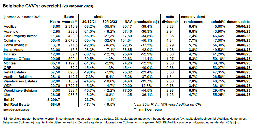 Bij de Belgische GVV's merken we stevige onderwaarderingen en hoge dividendrendementen. Het gevolg van de forse koersdalingen. Gert gaat ook dieper in op Vastned Belgium, Cofinimmo, Montea en het bod op Intervest,
