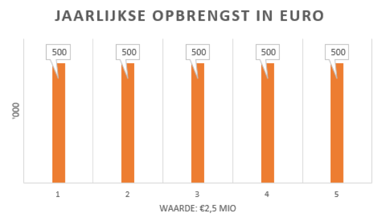 Wil je er dan 2,5 miljoen euro voor geven? “Geen denken aan!” zeg je. Heel leuk, zo’n gehypete kip, maar een spaarboekje brengt momenteel 3 procent op. Het zou niet slim zijn om je spaarboekjes leeg te halen en 2,5 miljoen voor de kip te geven, want dan levert je investering niets op. Je bent een belegger en je wilt een rendement op je investering, anders laat je je geld beter bij de bank staan.