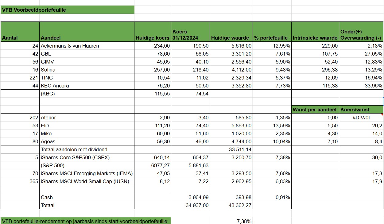 De Voorbeeldportefeuille heeft een goed eerste kwartaal achter de rug. Voor het vijfde kwartaal op rij steeg de waarde en wel met een mooie 4,3% terwijl de Bel20 index zo goed als ter plaatse trappelde. Het rendement op jaarbasis sinds de oprichting eind 2017 komt hiermee op 7,43% tegenover 2,99% voor de Bel20 index.