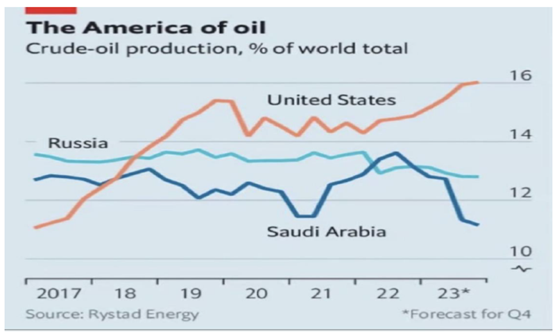 Energie, De prijzen voor ruwe olie blijven afwisselend stijgen en dalen, zie rode curve.