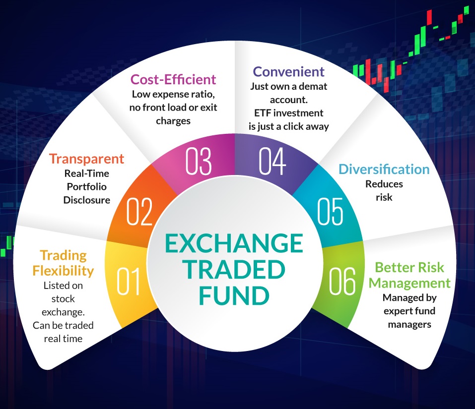 Een Exchange Traded Fund of ETF is een kostenefficiënt beleggingsfonds dat beursgenoteerd is op één of meerdere beurzen en nauwgezet een marktindex volgt, zoals bijvoorbeeld de S&P500 of de MSCI Europe.
