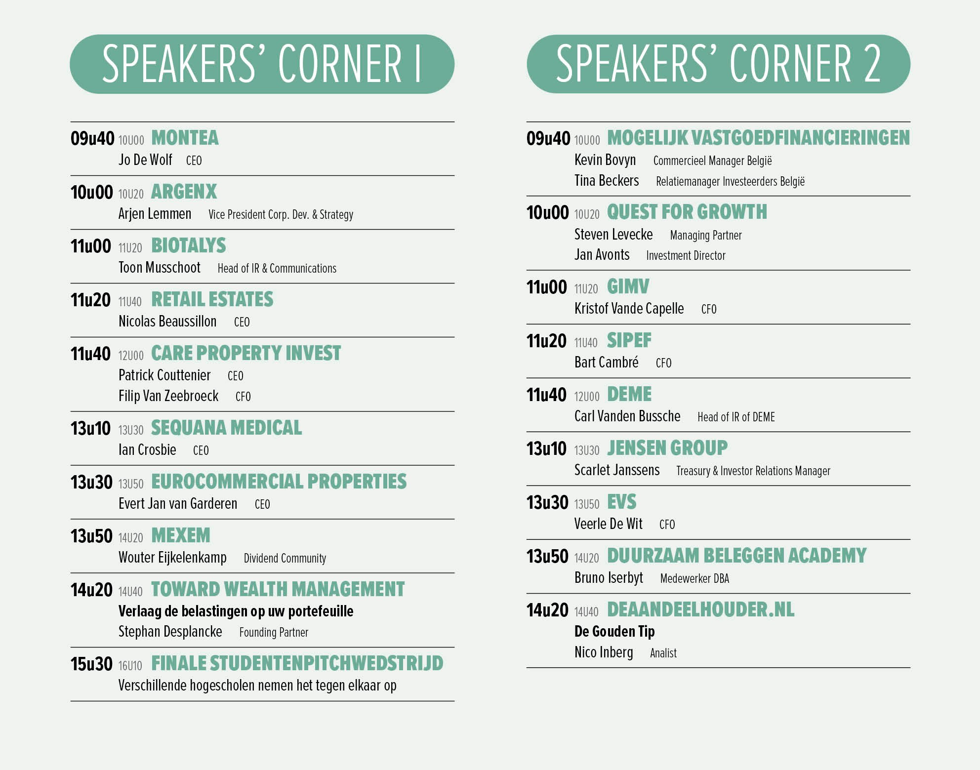 Ceo's stellen hun bedrijf voor, experten delen hun kennis en er zijn workshops voor elk type belegger.