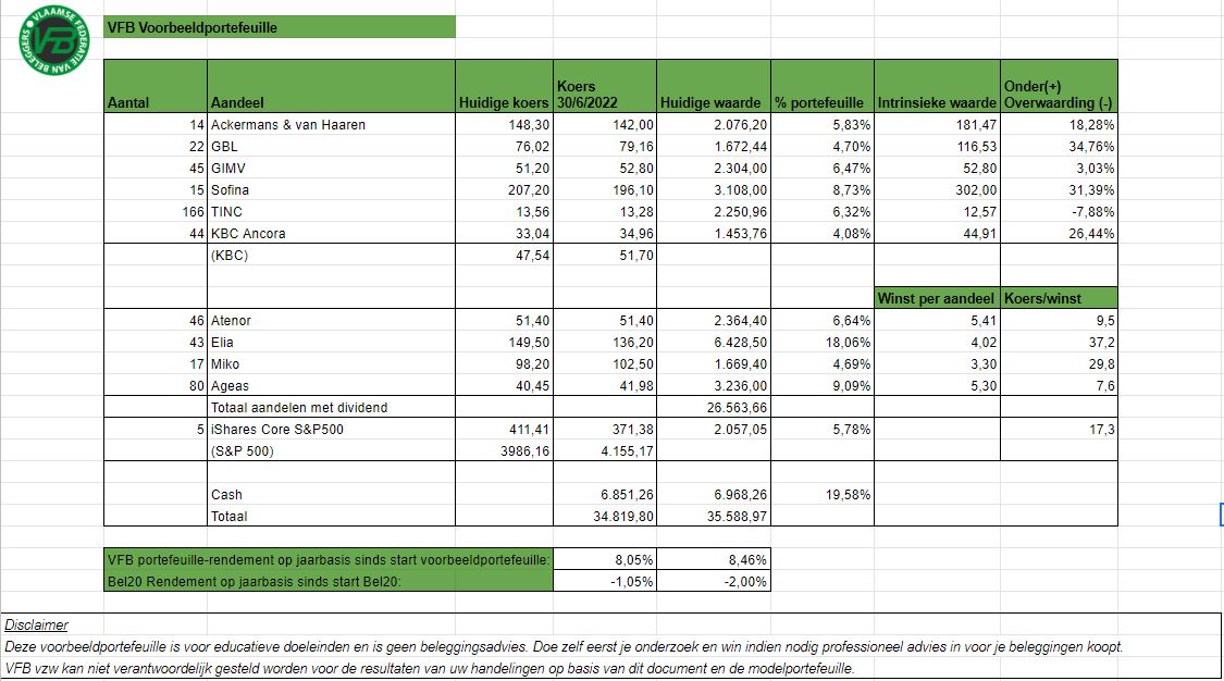 De Voorbeeldportefeuille heeft een erg goed tweede kwartaal achter de rug. Sinds het begin van het jaar komt het rendement nu op 15,30% tegenover 4,96% voor de Bel20. Met dank aan Elia, Sofina, Ageas, KBC Ancora en Ackermans.